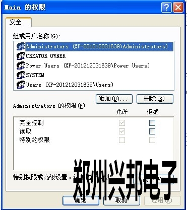 3. 選中Main右擊,選擇“權(quán)限”選項(xiàng),在彈出來(lái)的“Main的權(quán)限”界面下,選中組或用戶名稱下內(nèi)容,在“完全控制”選項(xiàng)中,在“允許”下方打“V "
